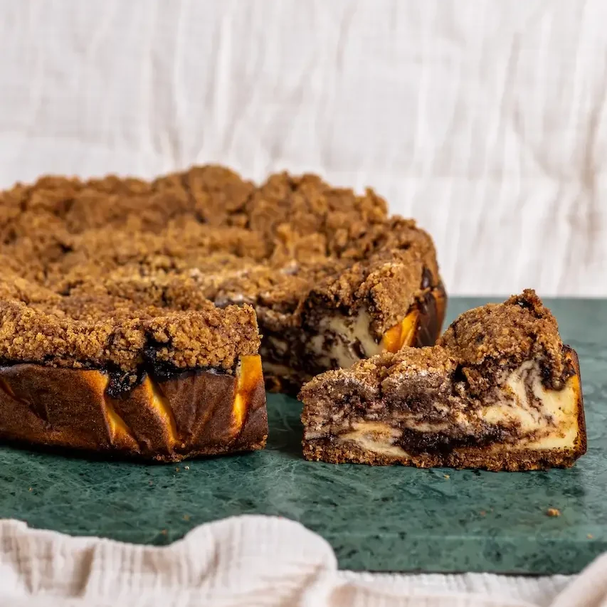 Ingredients: oat cookies, butter, cinnamon, brown sugar, cocoa powder, flour, cream cheese, sugar, sour cream, salt, eggs